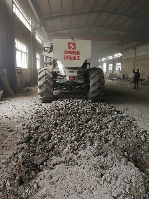 2017年歲末,我路拌公司研發(fā)的新產品RS600水泥路面破碎機樣機下線,并成功完成了水泥路面的破碎試驗,試驗的結果讓開發(fā)人員驚喜,實際工作效果超出預期,報廢的車間水泥路面強度雖然高,但破碎機工作穩(wěn)定,堅硬的水泥路面輕松破碎。